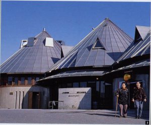 “円錐状の屋根の駅舎は、国際的なデザイン賞であるブルネル賞を受賞しているが、近隣の山々の樹木をイメージしたものだ。