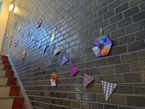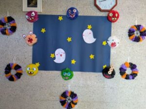 一人一つ下げられたおばけのバックにお菓子をいれてあげました、